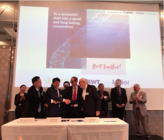 6月6日,海爾集團與BWT集團在德國簽訂戰(zhàn)略合作協(xié)議,雙方整合各自在凈水技術(shù)研發(fā)、大規(guī)模定制、觸點網(wǎng)絡(luò)等領(lǐng)域的優(yōu)勢,以資本合作為紐帶,強強聯(lián)合,共建全球一流水生態(tài),為中國用戶定制高端凈水解決方案。據(jù)悉,雙方合資成立的制造工廠將落戶青島西海岸新區(qū)中德生態(tài)產(chǎn)業(yè)園。 中國駐杜塞爾多夫總領(lǐng)事馮海陽、青島市委常委、市委秘書長祝華、杜賽爾多夫副市長Wolfgang Scheffler、BWT集團CEO Andreas Weissenbacher、海爾集團副總裁解居志等出席了此次簽約儀式。杜塞爾多夫工商會榮譽主席、德國電信監(jiān)事會主席李寧雅,杜塞爾多夫市副市長謝福剛,北威州經(jīng)濟部國際事務(wù)局局長凱爾克曼,德國亞太經(jīng)濟委員會首任主席、西門子前董事長兼CEO馮必樂,BWT集團董事長Weissenbacher Andreas先后致辭,并見證雙方簽約。