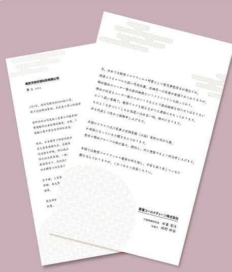 倡議發(fā)出至今,公司一直在陸續(xù)接收全體員工以及合作伙伴們的各類愛心捐贈,并快速啟動了特殊時期的物流響應方案。截至目前,第一批來自合作伙伴—南京天加環(huán)境科技有限公司捐贈的安全防護口罩,已經順利送到日本同仁們的手中,為他們帶去安全感和鼓勵。堅信我們一定能真正戰(zhàn)勝疫情,在一個重現(xiàn)生機的世界里繼續(xù)加強跨國、跨地區(qū)事業(yè)合作,回報所有伙伴的支持和關愛,共同發(fā)展前行。 來自安藤先生和岡野先生的感謝信