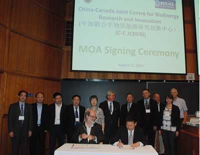 由中國北京化工大學和加拿大不列顛哥倫比亞大學聯(lián)合創(chuàng)辦的中加聯(lián)合生物質(zhì)能源研究創(chuàng)新中心11日在不列顛哥倫比亞大學正式成立。