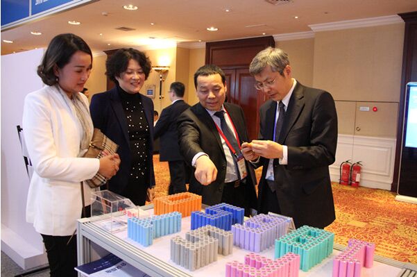 智慧能源展臺(tái)前蔣華君向嘉賓介紹遠(yuǎn)東福斯特新能源有限公司18650鋰電池及應(yīng)用
