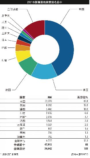 4月25日全球風(fēng)能理事會在發(fā)布的《全球風(fēng)電報告:年度市場發(fā)展》中指出,2016年全球風(fēng)電新增裝機容量超過54GW,相比2015年增速有所放緩,其中中國繼續(xù)大幅領(lǐng)先風(fēng)電新增裝機和累計裝機量,名列全球第一,同時中國累計裝機量約是第二名美國的兩倍,新增裝機量約是美國的四倍。 該全球風(fēng)能理事會的預(yù)測顯示,2017年全球風(fēng)電年新增裝機有望達(dá)到60GW,且增長主要由亞洲國家引領(lǐng)。 2021年新增容量將增至75GW 具體而言,2016年全球風(fēng)電新增裝機容量超過54GW,這些裝機容量分布在90個國家,其中9個國家的裝機容量超過10GW,29個國家的裝機容量達(dá)到1GW,累計裝機容量增長12.6%,累計容量達(dá)到486.8GW。