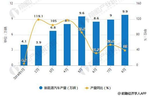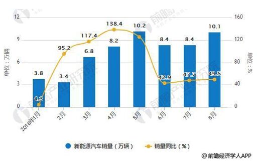 2018年1-8月新能源汽車產(chǎn)銷量統(tǒng)計(jì)及增長情況