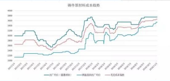 △2017年以來,普通球墨鑄鐵、廢鋼等鑄件原材料成本不斷攀升。(數(shù)據(jù)來源:中華商務(wù)網(wǎng))