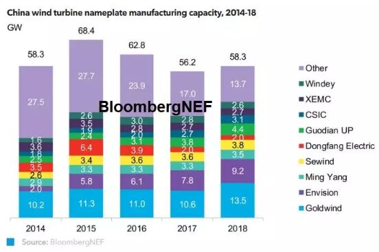 中國是全球最大也是產(chǎn)能最為過剩的風機市場。在陸上風電市場持續(xù)發(fā)展的同時,海上風電將驅動下一輪的風機產(chǎn)能增長。與此同時,激烈的市場競爭將進一步推動市場集中度提升,使國內(nèi)風機產(chǎn)能集中在少數(shù)的風電整機制造商當中。