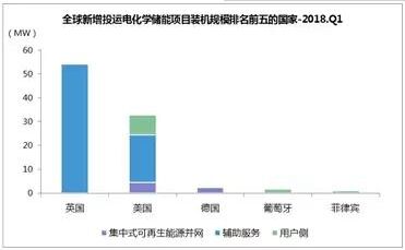 據(jù)EnergyTrend儲能不完全統(tǒng)計,海外市場在2020年第一季度共發(fā)布了約3.59GW的投標,涵蓋了太陽能發(fā)電、電池儲能系統(tǒng)及抽水發(fā)電儲能項目等。 其中,據(jù)行業(yè)機構(gòu)數(shù)據(jù)顯示,2018年一季度,全球新增投運電化學(xué)儲能項目的裝機規(guī)模為94MW,同比下降37%。 從地域分布上看,英國新增投運項目的裝機規(guī)模最大,為54.5MW,美國緊隨其后。英國和美國的項目主要應(yīng)用在輔助服務(wù)領(lǐng)域,該領(lǐng)域分別占英國和美國投運項目的99%和60%。 從應(yīng)用分布上看,輔助服務(wù)領(lǐng)域的裝機規(guī)模最大,為73.8MW,占比為79%,同比增長228%,用戶側(cè)和集中式可再生能源并網(wǎng)領(lǐng)域分列二、三位,占比分別為14%和7%。 從技術(shù)分布上看,鋰離子電池的裝機規(guī)模最大,為93.7MW,占比為99.7%,它在各類應(yīng)用領(lǐng)域中均有分布,且其在輔助服務(wù)領(lǐng)域中所占的比重最大,為79%。