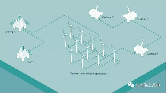 Hywind Tampen項(xiàng)目距離挪威海岸線約140公里,海域水深260-300米,采用11臺西門子8MW機(jī)組,總裝機(jī)容量88MW,預(yù)計將于2022年第三季度投入運(yùn)營,屆時將成為首個為油氣裝置平臺供電的漂浮式海上風(fēng)電項(xiàng)目。項(xiàng)目投運(yùn)后將為5個海上油田供電,滿足其年電力需求的35%,每年可使油田減少二氧化碳排放量20萬噸以上,相當(dāng)于10萬輛私家車的年排放量。 該海上風(fēng)電場項(xiàng)目總監(jiān)表示:由于采用了大容量的機(jī)組、混凝土基礎(chǔ)結(jié)構(gòu)以及新技術(shù)和裝配工藝,預(yù)期成本將低于蘇格蘭海上風(fēng)電項(xiàng)目40%左右。挪威國家石油公司預(yù)計到2030年,海上漂浮式風(fēng)電可與其他能源發(fā)電形式直接競爭。