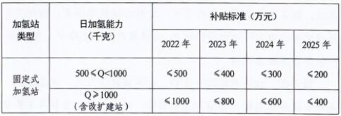 四、實施加氫站運營補貼。對于氫氣零售價格不超過每千克35元的加氫站,按照每年氫氣實際銷售量實行逐年退坡的運營補貼政策,每年每座加氫站氫氣運營補貼最高不超過200萬元。