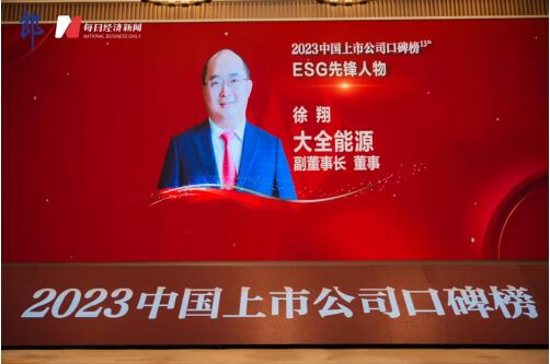 11月17日,由每日經(jīng)濟新聞發(fā)起的“中國上市公司口碑榜”評選獲獎名單于第十二屆中國上市公司高峰論壇上正式揭曉。大全能源副董事長徐翔憑借其帶領(lǐng)企業(yè)ESG治理實踐,持續(xù)深化企業(yè)可持續(xù)發(fā)展的卓越表現(xiàn),榮獲2023年度“ESG先鋒人物獎”。此次ESG先鋒人物獎的評選,評價體系立足于自身海量結(jié)構(gòu)化數(shù)據(jù)、AI機器學習技術(shù)等,綜合上市公司各類公告、媒體輿情、政府機構(gòu)及第三方等數(shù)據(jù)來源,形成指標數(shù)據(jù)庫;同時運用多種算法實現(xiàn)指標數(shù)據(jù)的提取、計算和評級結(jié)果輸出,加工成評價結(jié)果數(shù)據(jù)庫,最終實現(xiàn)上市企業(yè)的ESG績效的有效量化,獎項的科學性和含金量廣受各界認可。作為今年新設(shè)重磅獎項之一,“ESG先鋒人物獎”的關(guān)注度與份量不言而喻。此次徐翔獲此殊榮,一方面,源于徐翔以先進的ESG理念引領(lǐng)大全能源發(fā)展的出色實踐;另一方面,也正是業(yè)界對于大全能源積極踐行ESG可持續(xù)發(fā)展、推動綠色轉(zhuǎn)型先鋒地位的高度認可。