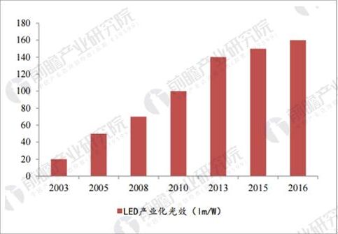 國(guó)內(nèi)LED產(chǎn)業(yè)化光效迅速提升