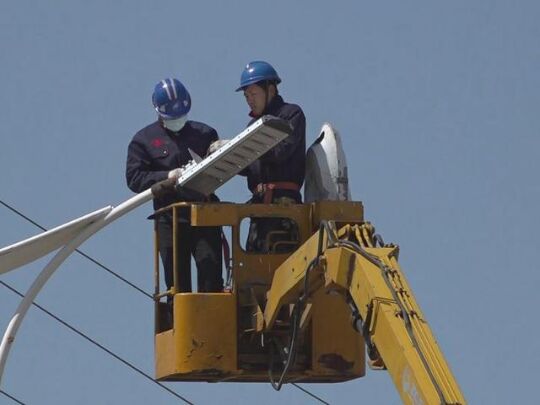 4月24日,在煙臺(tái)萊州市區(qū)光州西街,記者看到,四輛高空作業(yè)車(chē)一字排開(kāi),住建局路燈管護(hù)中心的工作人員正在更換老舊燈頭,記者了解到,光州西街路燈老化,已經(jīng)到了更換的時(shí)間,此次全部更換成節(jié)能的LED路燈,也將大大提高路燈的使用效率。煙臺(tái)萊州市路燈管護(hù)中心工作人員徐偉蓬介紹說(shuō),“近兩年來(lái),萊州市陸續(xù)推行LED路燈的安裝應(yīng)用,從目前情況來(lái)看,LED燈環(huán)保節(jié)能、光效高、壽命長(zhǎng),減少了交通隱患,提高了路燈能源的利用率,節(jié)省了運(yùn)行經(jīng)費(fèi)”。