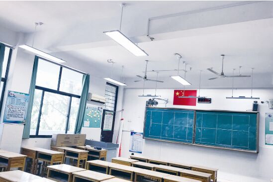 在健康照明方面,“關(guān)注基礎(chǔ)裝備,助力健康成長”工程投入了352.6萬元,將惠及14所學校,改善159間教室的照明環(huán)境。今年暑假,徐州市開始在部分學校推廣使用健康節(jié)能護眼燈(即LED面板燈),進一步改善學校教室照明條件,保護學生視力,控制近視新發(fā)病率,改善近視學生視力。在徐州市第十三中學,每間教室都安裝了9盞健康節(jié)能護眼燈和3盞黑板燈,打開電源后,柔和的燈光便籠罩在桌面和黑板上。