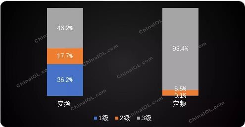 2018年中國國內定變頻空調能效等級結構分布(%)