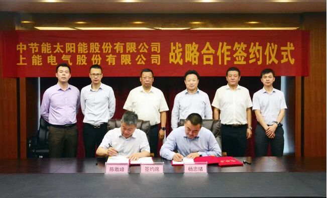 6月16日,上能電氣與中節(jié)能太陽能在無錫簽署戰(zhàn)略合作協(xié)議,旨在相互促進(jìn)、共贏發(fā)展。中節(jié)能太陽能股份有限公司黨委書記、董事長曹華斌,副總經(jīng)理?xiàng)钪揖w,上能電氣股份有限公司董事長吳強(qiáng)、常務(wù)副總裁陳敢峰等雙方領(lǐng)導(dǎo)共同出席了簽約儀式,并進(jìn)行友好會(huì)談。
