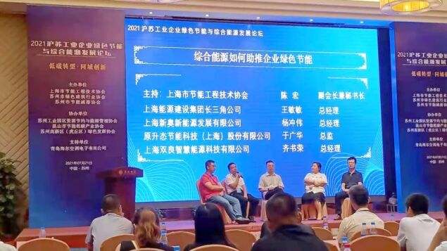 7月21日,由上海市節(jié)能工程技術協(xié)會、蘇州市綠色建筑行業(yè)協(xié)會、蘇州市節(jié)能減排協(xié)會主辦的“2021滬蘇工業(yè)企業(yè)綠色節(jié)能與綜合能源發(fā)展論壇”在蘇州蘇苑飯店成功舉行。 本次會議以“低碳轉型·同城創(chuàng)新”為主題,邀請眾多政府領導、行業(yè)專家、工業(yè)企業(yè)、節(jié)能環(huán)保企業(yè),圍繞“3060”目標,為推動工業(yè)企業(yè)節(jié)能降碳,升級企業(yè)綠色節(jié)能與綜合能源管理運營模式,加強滬蘇工業(yè)企業(yè)間的相互交流,創(chuàng)新融合發(fā)展進行探討。