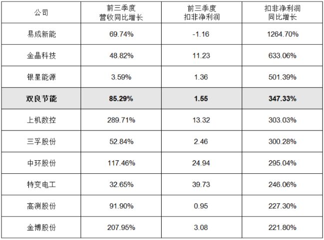 在光伏板塊已正式披露三季度報(bào)告的48家公司中,雙良節(jié)能前三季度無(wú)論是大幅上漲扣非凈利潤(rùn),還是綜合財(cái)務(wù)表現(xiàn)方面均名列前茅。