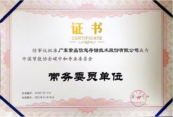 紫晶存儲正式成為“中國節(jié)能協(xié)會碳中和委員會常務委員單位”