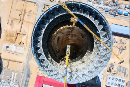5月1日,勞動者的節(jié)日,內(nèi)蒙古鄂爾多斯草原上風(fēng)和日麗,這是特別值得慶祝的一天——在國家能源集團(tuán)上海廟項(xiàng)目建設(shè)現(xiàn)場,由雙良冷卻公司EPC承建的#3鋼結(jié)構(gòu)間接空冷塔順利封頂。目前國能上海廟電廠二期間冷塔主體結(jié)構(gòu)工程總體進(jìn)度已完成過半,#3機(jī)組間接空冷系統(tǒng)設(shè)備安裝完成后很快就將進(jìn)入168試運(yùn)行階段。