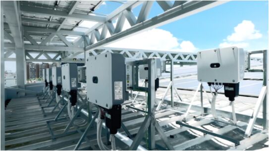 一是智能分布式光伏系統(tǒng)。通過在ABC三棟場館屋頂采用的智能優(yōu)化器組件鋪設的1.1MW光伏,可以實現(xiàn)每一塊組件獨立發(fā)電,提高了園區(qū)的建筑節(jié)能,而采用的AI智能電弧防護功能,消滅直流電弧火災隱患,智能化運維,進一步提高系統(tǒng)穩(wěn)定性,這也讓三棟場館每年發(fā)電每年生產綠電127萬度,等效植樹3.1萬棵。