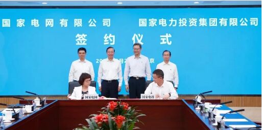 9月26日,國(guó)家電投與國(guó)家電網(wǎng)在京簽署戰(zhàn)略合作協(xié)議。國(guó)家電投黨組書(shū)記、董事長(zhǎng)錢智民,國(guó)家電網(wǎng)黨組書(shū)記、董事長(zhǎng)辛保安,國(guó)家電投董事、總經(jīng)理、黨組副書(shū)記江毅,國(guó)家電網(wǎng)黨組副書(shū)記龐驍剛出席并見(jiàn)證簽約。國(guó)家電投黨組成員、總會(huì)計(jì)師陳西,國(guó)家電網(wǎng)黨組成員、總會(huì)計(jì)師朱敏分別代表雙方簽署協(xié)議。