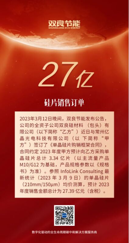 雙良大尺寸單晶硅片戰(zhàn)略推進(jìn)順利,本合同的簽訂標(biāo)志著公司的大尺寸單晶硅片產(chǎn)品獲得更多下游優(yōu)質(zhì)客戶及市場的認(rèn)可,對公司單晶硅片業(yè)務(wù)形成長期穩(wěn)定的銷售有著積極影響,有利于提高公司本年度單晶硅片業(yè)務(wù)的銷售收入和經(jīng)營現(xiàn)金流。(本次公告的訂單金額僅為估算金額)