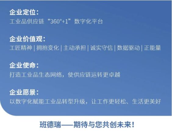 班德瑞以客戶為中心,關心客戶在成本、服務、交付、時間、產(chǎn)品、質量等方面的真實需求,通過班德瑞MRO商城,整合環(huán)保領域上游供應商的實時庫存數(shù)據(jù),提升供應鏈貨期,確保正品行貨與服務質量,為客戶提供專業(yè)的采購數(shù)字化升級解決方案,為客戶建立一個專業(yè)可信賴的管理平臺。未來,班德瑞將繼續(xù)深耕工業(yè)品行業(yè),立志為客戶帶來更優(yōu)質的服務!
