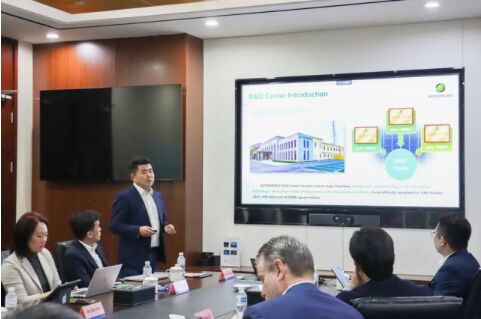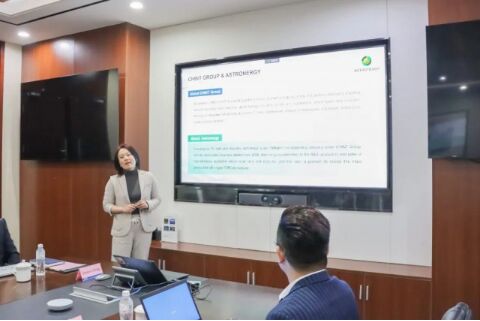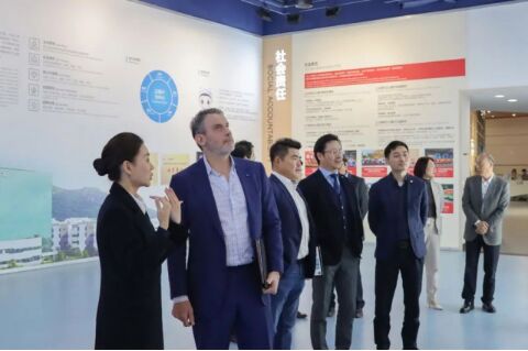 4月6日,德國萊茵TüV集團(以下簡稱“TüV萊茵”)全球產(chǎn)品服務執(zhí)行副總裁Kimmo Fuller一行赴正泰新能源杭州園區(qū)走訪交流。正泰新能源董事長兼總裁陸川熱情接待。