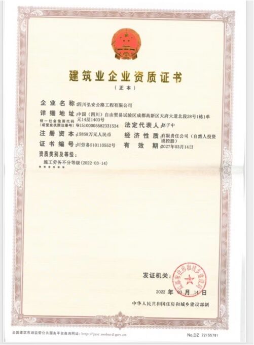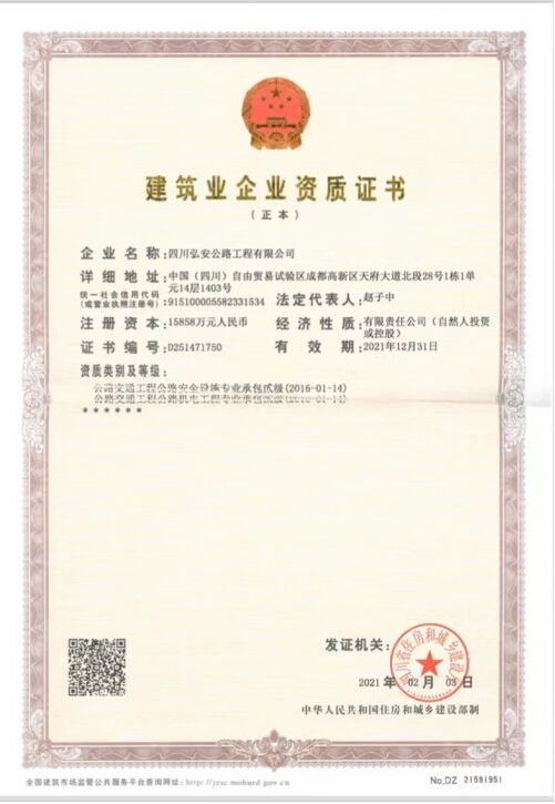 弘安公路前身是成都利發(fā)交通設施有限公司,成立于2000年,目前已發(fā)展成集研發(fā),生產(chǎn),施工于一體的綜合性高新技術(shù)企業(yè)。經(jīng)過長年累月、鍥而不舍地大量改革,科學技術(shù)創(chuàng)新,弘安公路研發(fā)了十三項實用新型專利和發(fā)明專利,包括《道路收費系統(tǒng)》,《交通標志牌的新型材料》,《波形護欄防撞氣囊》,《新型隔音墻(吸塵,吸音)》,《汽車油箱防盜油》等等專利產(chǎn)品,在交通設施,交通工程,交通工具等方面提供了更為低碳環(huán)保的方案及產(chǎn)品,為全世界人類做出更大貢獻。目前公司的資質(zhì)有《交通工程總承包二級》,《機電工程總承包二級》,《勞務資質(zhì)》不分等級。
