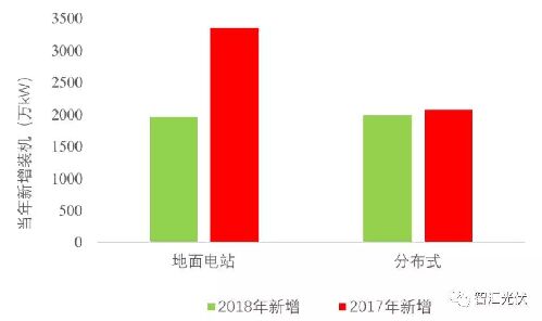 圖:2017、2018年分布式、地面新增裝機(jī)對比