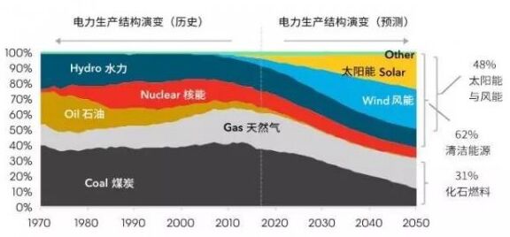 中國(guó)現(xiàn)在是這兩項(xiàng)技術(shù)的世界領(lǐng)導(dǎo)者。 結(jié)果是,中國(guó)正在引領(lǐng)能源轉(zhuǎn)型。還遠(yuǎn)不止這些。在先進(jìn)電網(wǎng)技術(shù)的開(kāi)發(fā)和應(yīng)用方面,中國(guó)遙遙領(lǐng)先于其他國(guó)家,還是全世界最大的鋰離子電池生產(chǎn)國(guó),約占全球產(chǎn)能的60%。去年,中國(guó)企業(yè)安裝的民用核電站比其他任何國(guó)家都多。目前共有300萬(wàn)輛電動(dòng)汽車行駛在全世界的道路上,其中大多數(shù)都在中國(guó)——中國(guó)占去年電動(dòng)汽車總銷量的56%。 中國(guó)也將是風(fēng)電和光電的最大市場(chǎng),到2050年,兩者在電力中的占比將從目前的8%上升到48%。中國(guó)的能源排放將在2026年見(jiàn)頂,隨后的20年內(nèi),排放將下降一半。 到2050年,亞洲的電力需求將上升超過(guò)一倍,為了達(dá)到這樣的需求,整個(gè)亞太地區(qū)的能源投資需要達(dá)到5.8萬(wàn)億美元,其中,中國(guó)和印度加起來(lái)就超過(guò)4.3萬(wàn)億美元。 三. 能源改革助力低碳經(jīng)濟(jì) 如果可再生能源的發(fā)展真如《展望2019》所預(yù)測(cè)的一般,那么,《巴黎協(xié)定》所制定的“將本世紀(jì)全球平均氣溫上升幅度控制在2攝氏度以內(nèi)”的目標(biāo)將很有可能實(shí)現(xiàn)。 并且,各國(guó)政府在未來(lái)10-15年將不再需要對(duì)風(fēng)電和光電進(jìn)行額外補(bǔ)貼!靶履茉囱a(bǔ)貼政策的時(shí)代即將結(jié)束。”BNEF首席經(jīng)濟(jì)學(xué)家Elena Giannakopoulou表示!暗需要進(jìn)行能源市場(chǎng)的改革,以保證光電和風(fēng)電有公平競(jìng)爭(zhēng)的機(jī)會(huì)! 當(dāng)然,光靠太陽(yáng)能、風(fēng)能和電池技術(shù)的進(jìn)步,不足以達(dá)到《巴黎協(xié)定》的目標(biāo)。 到本世紀(jì)中葉,風(fēng)能和太陽(yáng)能在多數(shù)國(guó)家的占比將達(dá)到80%以上,但低碳能源的占比如果想超過(guò)這個(gè)比例,就需要其他技術(shù)的幫助,比如核能、生物發(fā)電、碳捕捉等。 因此,彭博提出,各國(guó)政府需要在兩個(gè)方面做出努力:一方面,通過(guò)政策改革保證市場(chǎng)對(duì)于低價(jià)的風(fēng)電和光電足夠友好;另一方面,提前部署能源技術(shù),以保證低碳目標(biāo)的推進(jìn)。 無(wú)論是低碳經(jīng)濟(jì)的大勢(shì)所趨,還是清潔能源本身技術(shù)的飛躍,都在指向一個(gè)有希望的未來(lái)。 從現(xiàn)在開(kāi)始的30年里,光伏等清潔能源在全球能源中的占比將不斷提升,而中國(guó)將是這一次飛躍的領(lǐng)軍者。