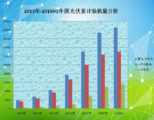 根據(jù)統(tǒng)計(jì)數(shù)據(jù)計(jì)算,自2013年啟動(dòng)開始,截止2018年底,中國光伏裝機(jī)總量達(dá)到174.19GW,年復(fù)合增長率超過73%,較之2012年的6.5GW增長約26倍! 不久前,國家發(fā)改委能源研究所研究員王斯成也曾表示,過去10年,中國光伏取得了令人驕傲的成績:從中國光伏全產(chǎn)業(yè)鏈產(chǎn)品的全球市占率來看,2018年,多晶硅占比57.8%,電池和組件均超過70%,而硅錠硅片更是高達(dá)90%左右;從市場資源開發(fā)來看,國內(nèi)市場2107年新增裝機(jī)量53GW,2018年的44GW,穩(wěn)居全球最大的光伏市場。此外,10年來光伏產(chǎn)品和發(fā)電成本下降超過90%,生產(chǎn)技術(shù)水平和設(shè)備國產(chǎn)化率均大幅度提高,光伏年產(chǎn)值已超過5000億元。 旺季來臨 近日,國家能源局發(fā)布了2019年上半年光伏發(fā)電建設(shè)運(yùn)行情況,數(shù)據(jù)顯示,截至2019年6月底,全國光伏發(fā)電累計(jì)裝機(jī)185.59GW,同比增長20%,新增11.4GW。其中,集中式光伏發(fā)電裝機(jī)130.58GW,同比增長16%,新增6.82 GW;分布