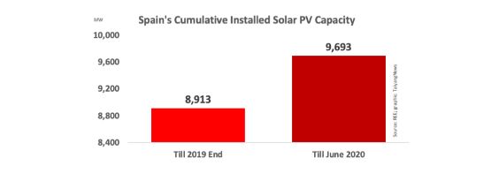 近日,西班牙電網(wǎng)運營商Red Electrica de Espana(REE)發(fā)布消息稱,2020年上半年西班牙新增的780MW太陽能光伏發(fā)電容量,風(fēng)電新增了446MW容量,這兩種可再生能源共計增加了1,226MW容量。在此期間,光伏最大新增容容量主要得益于西班牙Iberdrola公司500MW太陽能發(fā)電項目的上線。 根據(jù)REE數(shù)據(jù)顯示,至2020年6月太陽能光伏發(fā)電量為1,792GWh,年產(chǎn)量增長92%,光伏發(fā)電量的貢獻(xiàn)創(chuàng)下了新紀(jì)錄。2020年6月,光伏發(fā)電比例占總發(fā)電量的9.2%;1月-6月,太陽能光伏發(fā)電量占該國總發(fā)電量的6.1%。