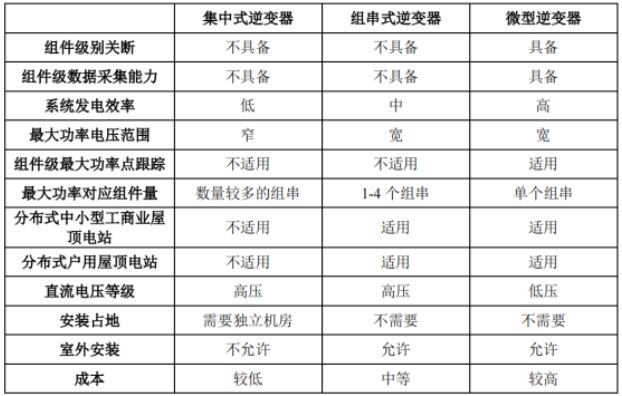 集中式、組串式、分布式光伏逆變器技術(shù)指標對比