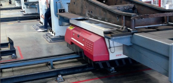 RGV 小車在三一臨港生產(chǎn)基地的結(jié)構(gòu)件焊接車間中用于全自動(dòng)生產(chǎn)挖掘機(jī)挖斗和動(dòng)臂