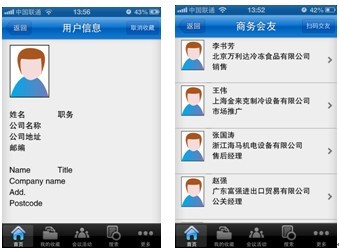 (二)商務會友 掃碼功能不僅能識別產(chǎn)品的二維碼,還可以拍攝參展人員或觀眾胸卡上的條形碼。只需輕輕一拍,便可獲取對方的身份信息,并自動記錄在“商務會友”里,省去交換名片的環(huán)節(jié)。(見圖3、4)