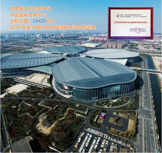 國(guó)家會(huì)展中心項(xiàng)目,全球最大的會(huì)展綜合體,目前世界上最大的冷熱電聯(lián)供系統(tǒng) 榮獲2016年度中國(guó)分布式能源優(yōu)秀項(xiàng)目特等獎(jiǎng)?傊评淞窟_(dá)24420KW。