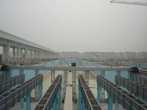 企業(yè): 江蘇新紀(jì)元環(huán)保有限公司 XJY型垂架式中心傳動(dòng)刮泥機(jī)主要由工作橋、中心驅(qū)動(dòng)裝置、中心傳動(dòng)豎架、刮臂桁架、刮泥板、中心整流擴(kuò)散筒、導(dǎo)流筒及撇渣排渣等部件組成。污水由中心柱管流出,經(jīng)中心整流擴(kuò)散筒及導(dǎo)流筒均勻布水后,水流呈水平旋流狀態(tài)向池周擴(kuò)散,污水中的懸浮物被分離而沉降于池底,通過中心驅(qū)動(dòng)及傳動(dòng)豎架帶動(dòng)刮板將污泥由池周刮向池... 詳細(xì)>> |