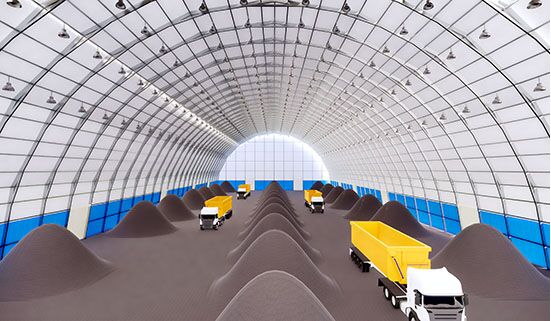 這種新型環(huán)保儲煤棚是對傳統(tǒng)露天煤場的進(jìn)行的全封閉改造,可做到全封閉式管理,讓配煤過程都能在篷內(nèi)完成,有效防止粉塵擴(kuò)散,不對周圍造成污染。但封閉不意味著不循環(huán)。內(nèi)部可安裝專業(yè)通風(fēng)設(shè)備,做到科學(xué)通風(fēng)粉塵零外溢。也能有效控制儲煤棚內(nèi)部的粉塵飛揚(yáng)。 另外,麗日儲煤棚形狀尺寸都可做到按需定制,并提供全系列配套,例如門窗系統(tǒng)、照明系統(tǒng)、以及監(jiān)控系統(tǒng),也可在儲煤棚大空間內(nèi)隔出辦公空間,在保證環(huán)保的前提下,可大大提高儲煤棚安全性,也推動經(jīng)濟(jì)與環(huán)境的和諧共贏。