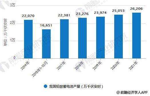 蓄電池產(chǎn)品歷史悠久,技術(shù)成熟,在功率特性、高低溫性能、組合一致性、回收再利用和價(jià)格等方面具有優(yōu)勢(shì)。所以,在短期內(nèi),蓄電池尚不能被其他電池產(chǎn)品所取代。 蓄電池行業(yè)發(fā)展現(xiàn)狀分析 隨著清潔化生產(chǎn)的推行,以及中國(guó)蓄電池行業(yè)的技術(shù)進(jìn)步和采用國(guó)際標(biāo)準(zhǔn)的進(jìn)程加速,近十年來(lái),蓄電池產(chǎn)品的質(zhì)量水平也在不斷地提高?梢哉f(shuō),目前企業(yè)產(chǎn)品質(zhì)量水平的差異化正在逐漸縮小,產(chǎn)品質(zhì)量總體水平達(dá)到國(guó)際同類(lèi)產(chǎn)品水平。但客觀而論,在質(zhì)量穩(wěn)定性、質(zhì)量一致性方面,我們與國(guó)際先進(jìn)工業(yè)國(guó)家的產(chǎn)品還存在較大差距。 中國(guó)蓄電池產(chǎn)量統(tǒng)計(jì)分析 據(jù)前瞻產(chǎn)業(yè)研究院發(fā)布的《鉛酸蓄電池行業(yè)市場(chǎng)前瞻與投資戰(zhàn)略規(guī)劃分析報(bào)告》統(tǒng)計(jì)數(shù)據(jù)顯示,2014年,我國(guó)鉛酸蓄電池產(chǎn)量為22070萬(wàn)千伏安時(shí)。2015年1-10月,我國(guó)鉛酸蓄電池產(chǎn)量為16651萬(wàn)千伏安時(shí)。2017年我國(guó)鉛酸蓄電池產(chǎn)量將達(dá)到22381萬(wàn)千伏安時(shí),預(yù)計(jì)2018年我國(guó)鉛酸蓄電池產(chǎn)量將達(dá)23276萬(wàn)千伏安時(shí)。未來(lái)五年(2017-2021)年均復(fù)合增長(zhǎng)率約為4.02%,預(yù)計(jì)到了2021年我國(guó)鉛酸蓄電池產(chǎn)量將達(dá)到26206萬(wàn)千伏安時(shí)。