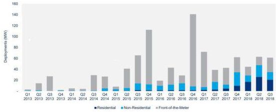 根據(jù)本周公布的最新美國能源存儲監(jiān)測報告,美國能源存儲項目在2018年翻了一番,達到32.9千兆瓦(GW)。