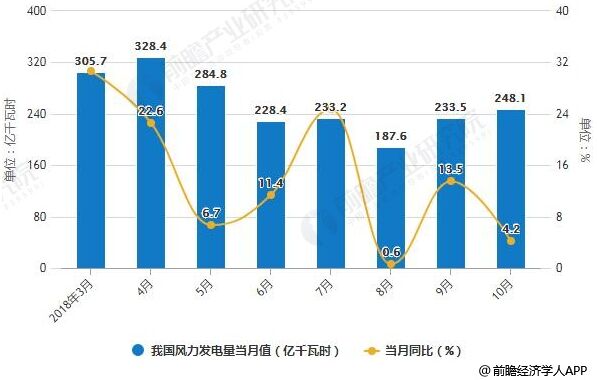 風(fēng)電行業(yè)發(fā)展勢(shì)頭強(qiáng)勁 近年來(lái),我國(guó)可再生能源發(fā)展駛?cè)肟燔嚨,以風(fēng)電為代表的新增主力發(fā)展勢(shì)頭強(qiáng)勁。據(jù)前瞻產(chǎn)業(yè)研究院發(fā)布的《中國(guó)風(fēng)電行業(yè)市場(chǎng)前瞻與投資戰(zhàn)略規(guī)劃分析報(bào)告》統(tǒng)計(jì)數(shù)據(jù)顯示,2018年前三季度,全國(guó)風(fēng)電新增并網(wǎng)容量1261萬(wàn)千瓦,同比增長(zhǎng)30%,風(fēng)電累計(jì)并網(wǎng)裝機(jī)容量達(dá)到1.76億千瓦。風(fēng)電裝機(jī)規(guī)模穩(wěn)步擴(kuò)大的同時(shí)發(fā)電量也在不斷攀升。據(jù)前瞻產(chǎn)業(yè)研究院數(shù)據(jù),2018年1-10月份全國(guó)絕對(duì)發(fā)電量55816億千瓦時(shí),其中2018年10月我國(guó)風(fēng)力發(fā)電量達(dá)到248.1億千瓦時(shí),同比增長(zhǎng)4.2%。2018年1-10月風(fēng)力發(fā)電量累計(jì)達(dá)到2624.5億千瓦時(shí),累計(jì)增長(zhǎng)18.8%。占全國(guó)電源總發(fā)電量的4.7%,風(fēng)電正在不斷地鞏固我國(guó)第三大主力電源的地位。