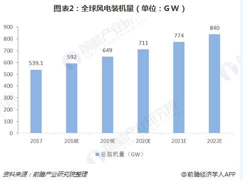 我國已成風(fēng)電行業(yè)“主戰(zhàn)場” 從全球風(fēng)電行業(yè)總體上來看,總裝機(jī)量逐年保持增長的趨勢。2017年全球累計(jì)風(fēng)電裝機(jī)容量約539 GW,根據(jù)GWEC的預(yù)測,2018年全球風(fēng)電裝機(jī)容量將會(huì)達(dá)到592GW。