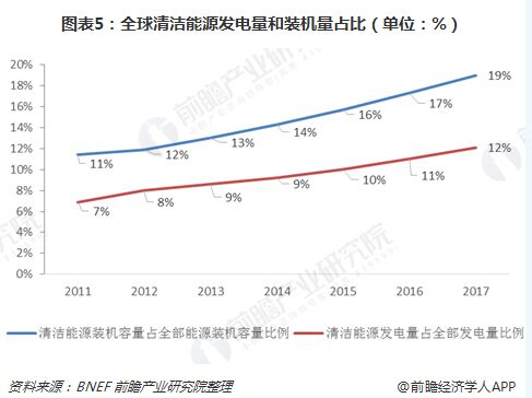 我國風(fēng)電并網(wǎng)裝機(jī)容量逐年提升 由于風(fēng)電行業(yè)技術(shù)的成熟,使得風(fēng)力發(fā)電,最終產(chǎn)生的電量能夠被使用成為可能。風(fēng)電行業(yè)近幾年在全球呈現(xiàn)多元化的發(fā)展趨勢,但是總體來看,風(fēng)電發(fā)電量和裝機(jī)量逐年呈現(xiàn)增長趨勢,全球清潔能源發(fā)電量(含水電)占全部發(fā)電量的比例由2011年的7%上升至2017年的12%;全球清潔能源裝機(jī)量(含水電)占全部裝機(jī)量的比例由2011年的11%上升至2017年的19%.