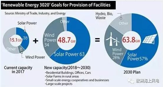 縱觀全球海上風(fēng)電市場,歐洲地區(qū)裝機(jī)容量獨(dú)占鰲頭,但亞太地區(qū)絕對(duì)是未來最具潛力的市場。國際能源署(International Energy Agency)在其發(fā)布的報(bào)告中預(yù)測,到2050年,全球海上風(fēng)電總裝機(jī)容量有望達(dá)到1000GW,其中,亞太地區(qū)占據(jù)了驚人的613GW! 而在亞洲的各個(gè)國家中,韓國無疑是最具潛力的新興市場——韓國政府的“可再生能源3020實(shí)施計(jì)劃”就是最好的證明。 規(guī)劃& 資源 韓國擁有良好的資源條件,盡管風(fēng)速不高,但在東海與日本海海域仍有巨大的開發(fā)潛力。目前,韓國政府設(shè)定了一個(gè)到2040年將可再生能源的比例從目前的7%提高到35%的目標(biāo)。其中,更有“可再生能源3020項(xiàng)目”的詳細(xì)目標(biāo)。 2017年末,韓國政府提出“可再生能源3020實(shí)施計(jì)劃”,旨在實(shí)現(xiàn)能源轉(zhuǎn)型,其目標(biāo)是到2030年,可再生能源占總能源消耗比例達(dá)到20%。為此需在2030年前新增4870萬千瓦可再生能源裝機(jī)容量,最終達(dá)到6380萬千瓦的總裝機(jī)規(guī)模,其中風(fēng)電計(jì)劃占比28%,既1770萬千瓦(其中海上風(fēng)電計(jì)劃約1300萬千瓦)。