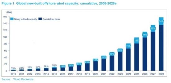 根據(jù)伍德麥肯齊(Wood Mackenzie)的研究,未來十年將是風(fēng)能產(chǎn)業(yè)的新篇章,預(yù)計(jì)到2028年,海上風(fēng)電在年度全球風(fēng)能市場中的份額將從去年的10%上升到25%。