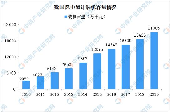 我國風(fēng)電建設(shè)始于20世紀(jì)50年代后期。1986年,我國第一座并網(wǎng)運行的風(fēng)電場在山東榮成建成,從此并網(wǎng)運行的風(fēng)電場建設(shè)進(jìn)入了探索和示范階段,風(fēng)電發(fā)展的初始階段,我國風(fēng)電場裝機(jī)規(guī)模及單機(jī)容量都相對較小。1996年,我國風(fēng)電場進(jìn)入擴(kuò)大規(guī)模建設(shè)階段,風(fēng)電場裝機(jī)規(guī)模及單機(jī)容量顯著增長,最大裝機(jī)容量達(dá)到1,500kW.2003年9月,國家發(fā)改委出臺《風(fēng)電特許權(quán)項目前期工作管理辦法》,風(fēng)電場建設(shè)進(jìn)入規(guī);皣a(chǎn)化階段。2006年,我國實施《可再生能源法》,風(fēng)電正式進(jìn)入大規(guī)模開發(fā)應(yīng)用的階段。2010年,經(jīng)過多年爆發(fā)式增長,我國開始出現(xiàn)明顯的棄風(fēng)限電現(xiàn)象。2013年起,棄風(fēng)現(xiàn)象出現(xiàn)好轉(zhuǎn)。2015年,受風(fēng)電標(biāo)桿電價下調(diào)影響,風(fēng)電項目出現(xiàn)明顯搶裝潮,新增裝機(jī)規(guī)模明顯。2019年全國風(fēng)電累計裝機(jī)容量21005萬千瓦。
