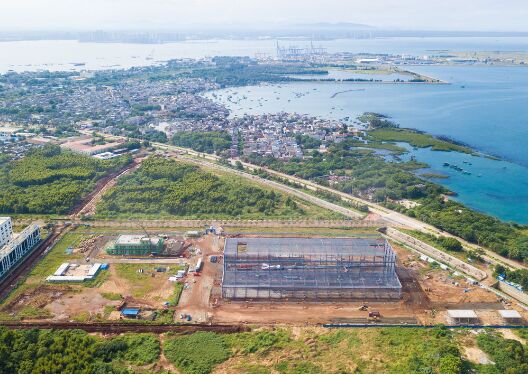 圖為10月2日在海南洋浦經濟開發(fā)區(qū)拍攝的建設中的申能電氣風電新能源裝備產業(yè)項目(無人機照片)。