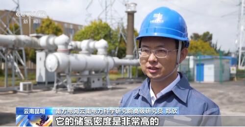 南方電網(wǎng)云南電力科學研究院高級研究員鄭欣:能夠儲存200立方米的氫氣,它的儲氫密度是非常高的,如果換成普通的常用的三個兆帕的儲氫罐,體積要增加20倍,可能這樣儲存的氫氣就要占滿這樣大半個場地的儲罐。