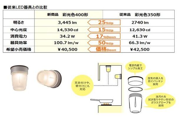 松下推出的這系列產品中,有筒燈、聚光燈、吸頂燈、天井燈、壁掛燈等多種形式,設計上是耐熱、防潮等功能,配光也好搭配,可應用在超級市場、飲食、食品販售的商業(yè)設施、餐飲店的廚房調理場域等環(huán)境,同時也通過日本政府的營業(yè)場所安規(guī)認證,稅前售價范圍根據品項約在1.48萬日圓~4.98萬日圓之間。