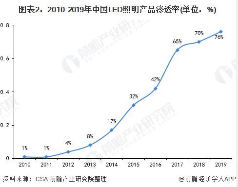 照明產(chǎn)品是國民經(jīng)濟發(fā)展和人民生活的必需品,照明行業(yè)在國民經(jīng)濟中具有特殊的地位和作用。照明從基于鎢絲燈,氣體放電燈的傳統(tǒng)照明跨入基于半導(dǎo)體器件的LED照明,正好遇到移動互聯(lián)網(wǎng)躍進到萬物互聯(lián)的物聯(lián)網(wǎng)IoT的時代風(fēng)口,兩者的結(jié)合,開創(chuàng)了前景廣闊的基于物聯(lián)網(wǎng)的智能照明時代。 平穩(wěn)發(fā)展的LED照明行業(yè)為智能照明打下基礎(chǔ) LED照明技術(shù)是智能照明的基礎(chǔ)。LED燈具有其他燈具無可比擬的優(yōu)點如體積小、高亮度低熱量、環(huán)保、可控性強等,目前正廣泛應(yīng)用在各照明領(lǐng)域中。2011年11月14日,國家發(fā)改委等五部委發(fā)布了“中國逐步淘汰白熾燈路線圖”,計劃從2016年10月1日開始,禁止進口和銷售15瓦及以上普通照明白熾燈。同時,LED照明產(chǎn)品成本不斷下降,其正在逐步替代傳統(tǒng)照明產(chǎn)品,成為家居、商業(yè)、工業(yè)、戶外照明的主力。2019年,中國LED照明市場規(guī)模達(dá)到6823億元,LED照明產(chǎn)品滲透率達(dá)到76%。