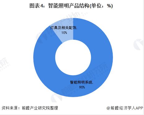 智能照明系統(tǒng)占據(jù)大部分市場份額 從產(chǎn)品結(jié)構(gòu)看,智能照明產(chǎn)品主要是智能照明系統(tǒng),占整體銷售市場的份額約為90%,燈具和相關(guān)配件占比則為10%。目前,智能照明打開了行業(yè)長期成長空間,LED智能照明產(chǎn)品的ASP和附加值將得到提升,其發(fā)展空間遠(yuǎn)大于傳統(tǒng)照明產(chǎn)品,快速替換期過后的長期成長動能來源得以解決。